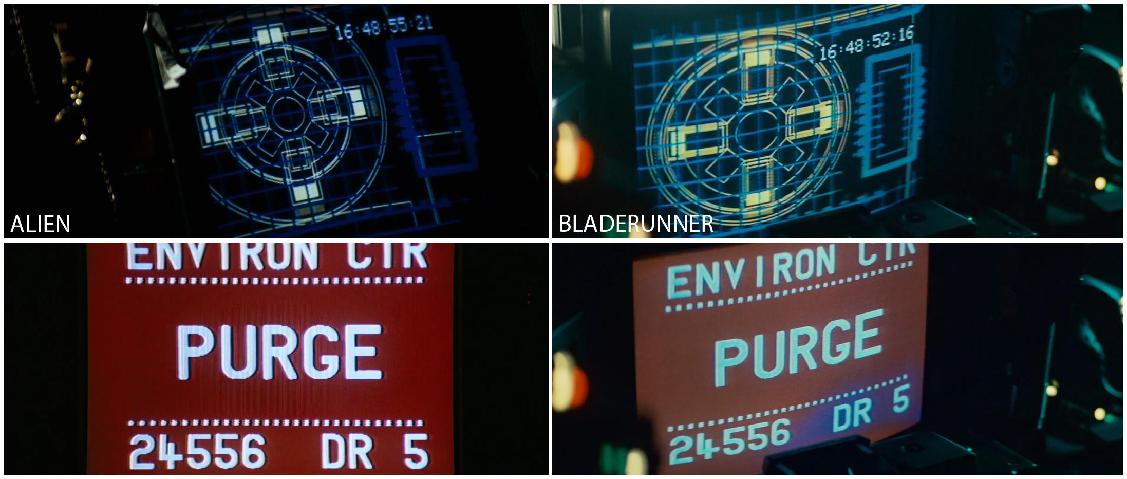 Любимым дизайнером и художником Риддли Скотта был Ганс Рудольф Гигер, одиозный швейцарский художник и оккультист, создатель целого зоопарка биомеханических монстров, которые явно повлияли на внешний вид и эстетику серии “Чужого”. Ему же принадлежит и идеология интерфейсов первых фильмов саги. Космический корабль “Ностромо” вообще резко контрастирует с традиционными белыми и выхолощенными космическими станциями других фильмов: нарочито грязный, пугающий и неудобный с точки зрения эргономики. Но нас интересуют его любопытные компьютерные интерфейсы : например иконка команды “ SOS” в форме креста. Этот символ-запрос о помощи был разработан Гигером и широко применялся во всем творчестве Ридли Скотта: действительно, крест — очень устойчивый визуальный паттерн, отражающий психоаналитический подход к юзабилити. Как говорит сам Риддли Скотт, «Я использовал то, что показано в «Чужом», во многих других своих фильмах. Это экстренный сигнал на экранах, который по сути является большим оранжевым крестом. Он — в «Завете», « Прометее» и «Бегущем по лезвию». Сигнал всегда используется, когда корабль взлетает с Земли.»
