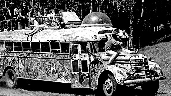 Ввод темы в поп-культуру произвел писатель Кен Кизи, к тому моменту известный книгой “Пролетая над гнездом кукушки”. Изначально эксперименты богемы с сознанием были не просто легальными - ими руководили академические чиновники из Стенфорда, где проходила программа опытов с психоделиками над добровольцами. Из первых участников этой программы Кизи собрал тусовку психонавтов, которые назвали себя “Веселыми проказниками”. После окончания программы, в 1964 году эти люди купили старый школьный автобус и поехали через всю страну в Нью-Йорк, по пути “посвящая” встречных людей в культ ЛСД. Главный ритуал проказников назывался “Кислотным тестом” и заключался в накачивании большими дозами психоделика людей, незнакомых с его действием. Поездка на автобусе освещалась американской прессой и была одобрена легендами богемного нарко-андеграунда - поэтом Алленом Гинзбергом и лицом бит-поколения Нилом Кэссиди. Кизи ввел тему психоделиков в молодежную контркультуру, однако фактическую наркотизацию провел поставщик ЛСД для “кислотных тестов”, саунд-инженер культовой группы The Grateful Dead Оусли Стенли III.